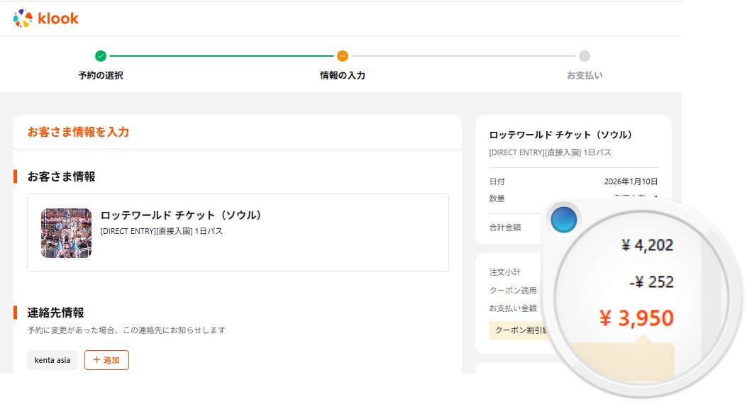 そのうえで、割引クーポンを適用!現時点ではKlookの割引クーポンが最強です。