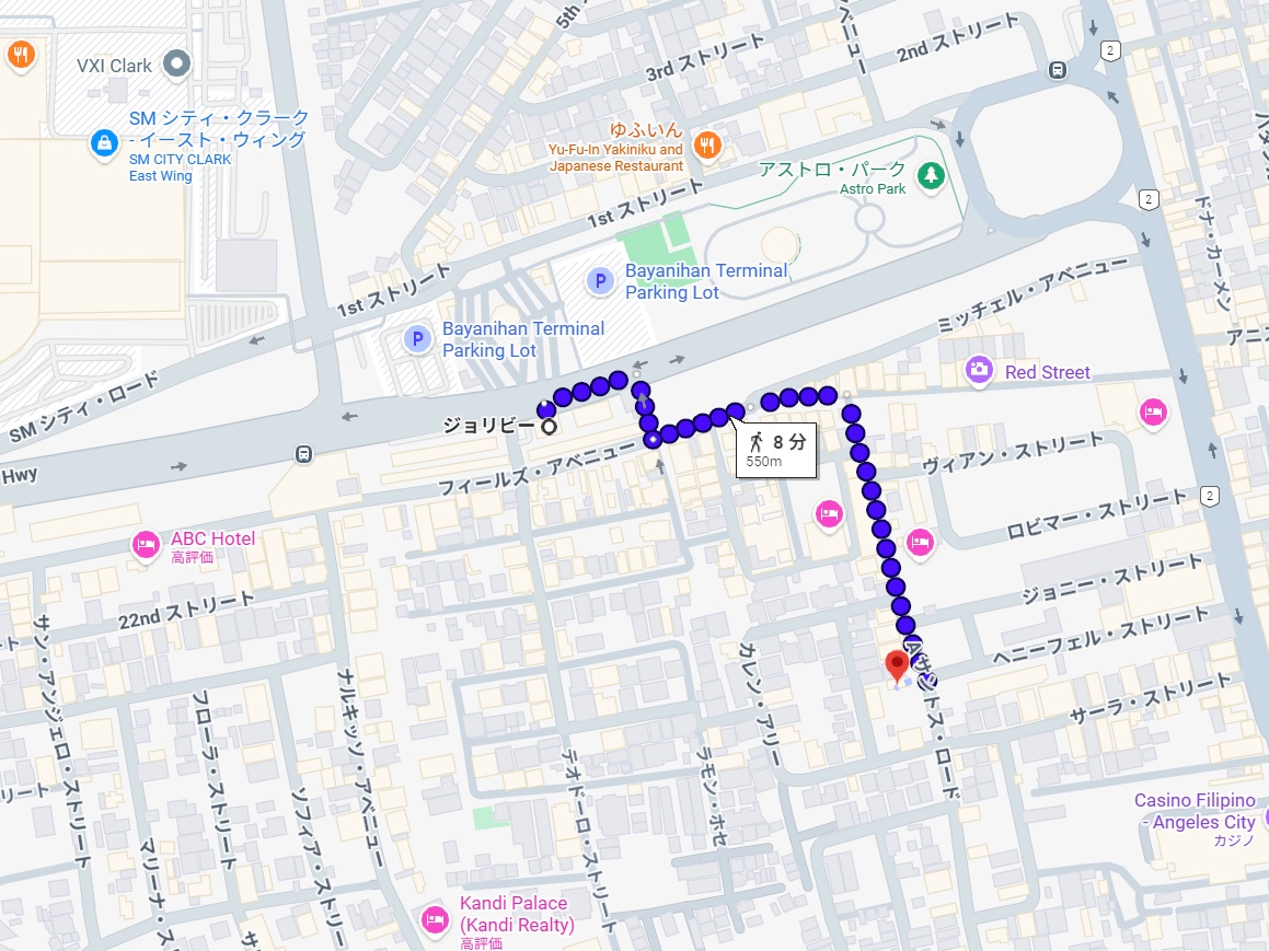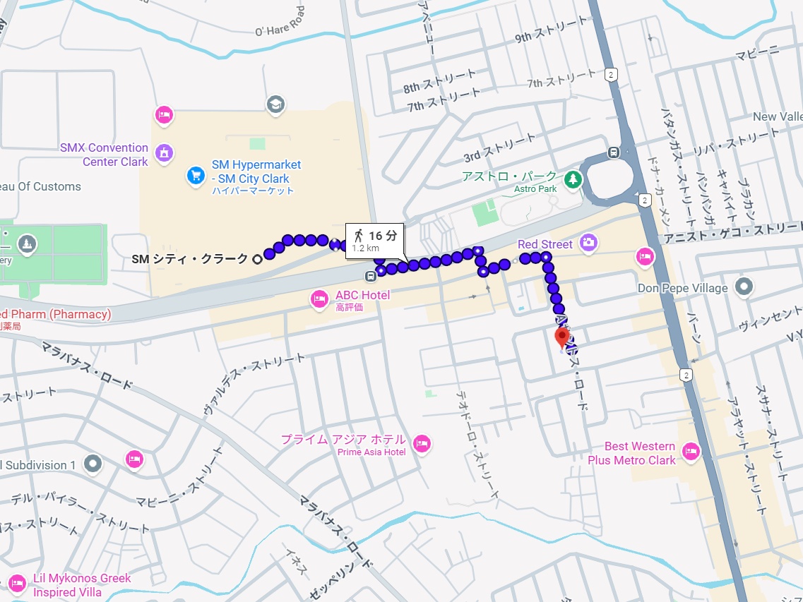 SMクラーク(モール)までは徒歩16分
