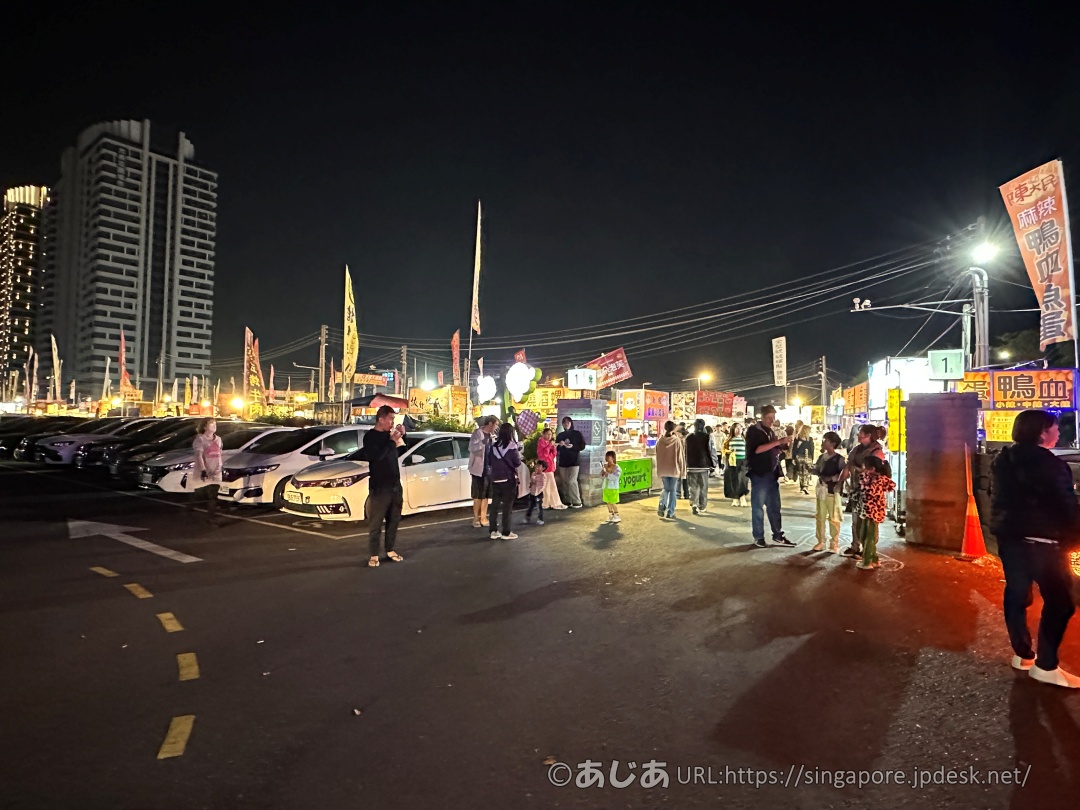 花園夜市は広大な空き地に屋台がずらりと並ぶスタイル。見た目では駐車場の一部が夜市になったという感じです。