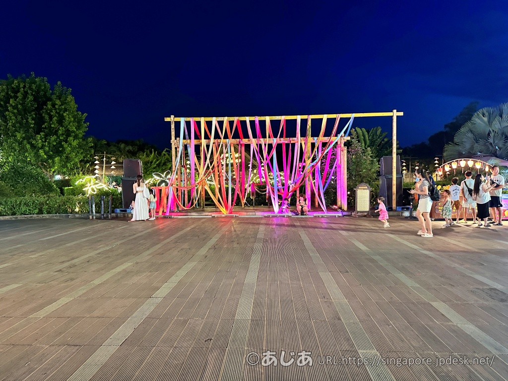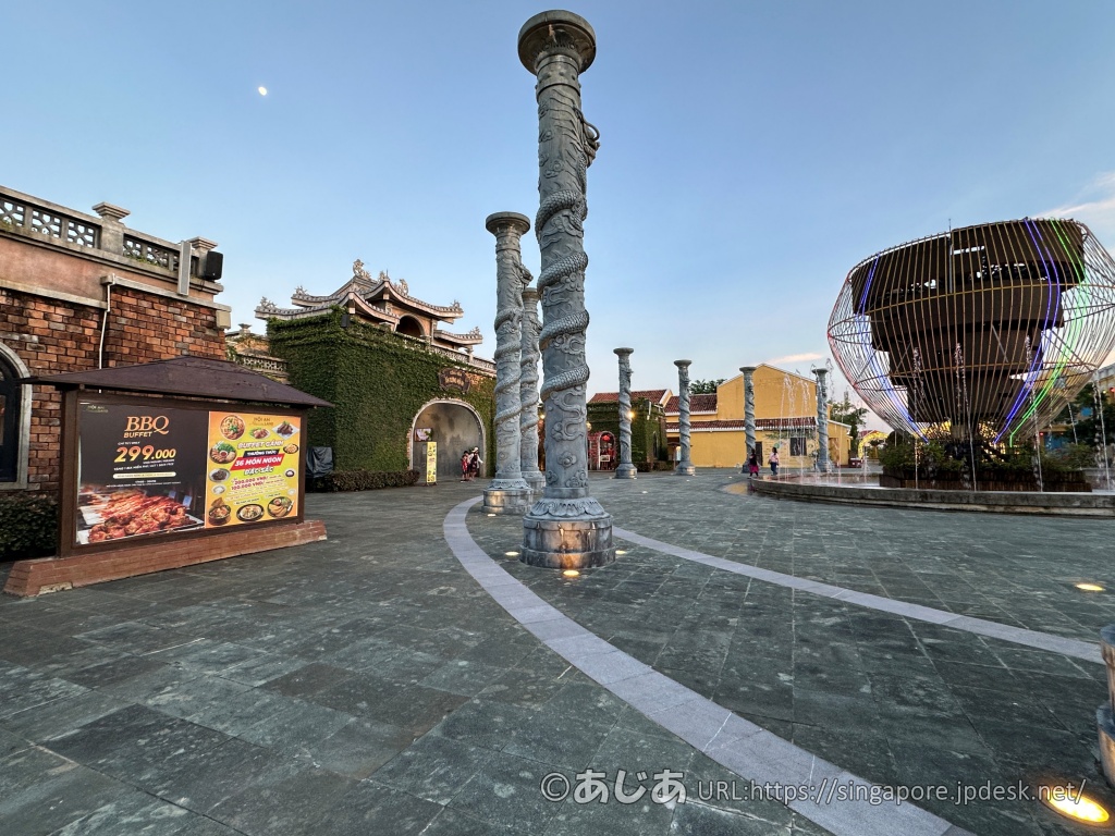 公園の中心にある大広場。大道芸やパフォーマンスが行われ、夜にはホイアン・メモリーズ・ショーの会場へとつながる拠点になります。
