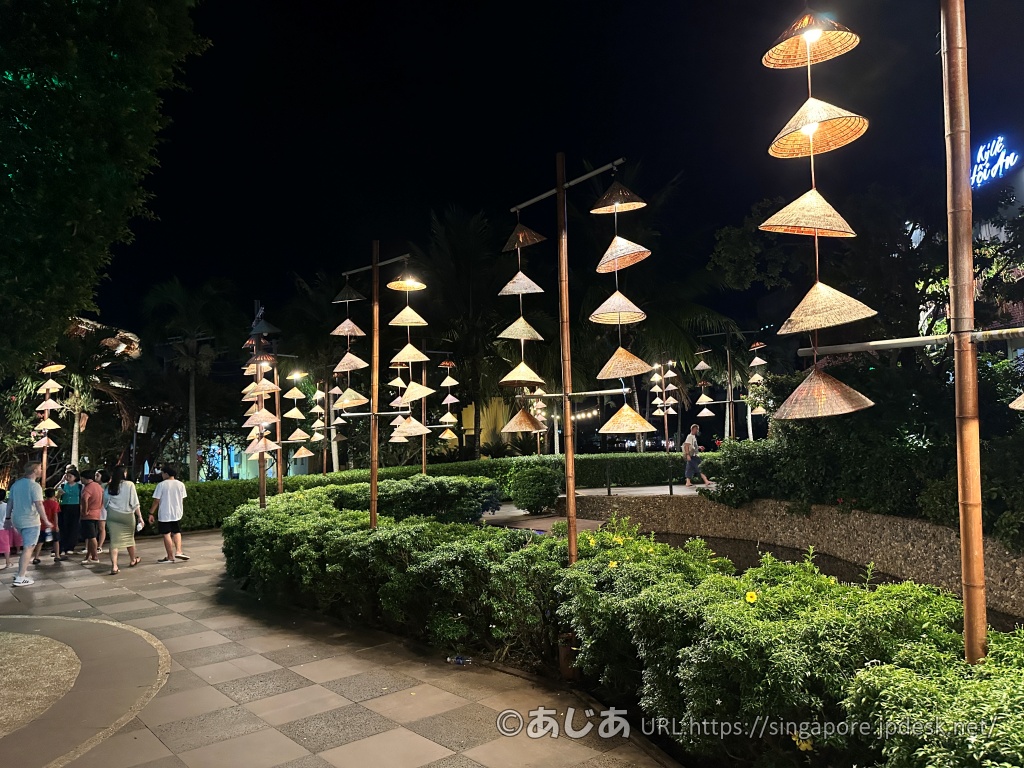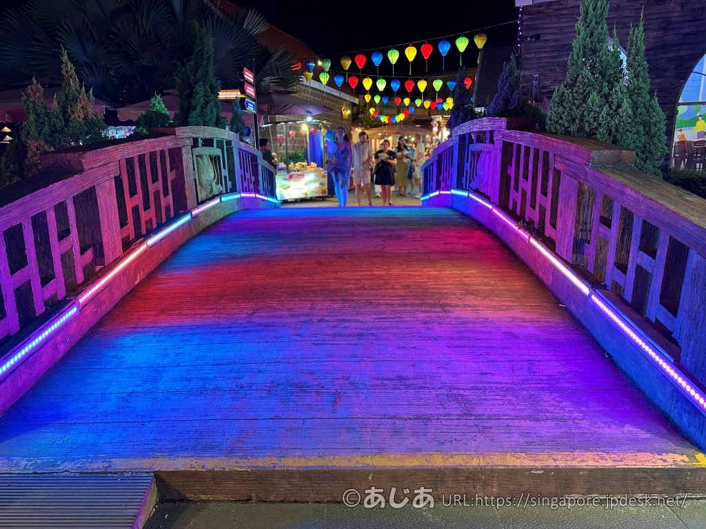 期待薄の方はムーンブリッジから、あれ?ここ結構すごいぞという違和感に見舞われるかもしれません。メインのエントランスゲートへの道中もしっかりライトアップされています。