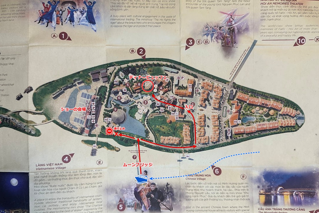 ショーの会場があるホイアンメモリーズランド(Hoi An Memories Land)の敷地内に入るだけなら料金はかかりません。ショーの会場周辺にも見どころはありますが、ここまで来てショーを見ないという選択肢はないと思います。