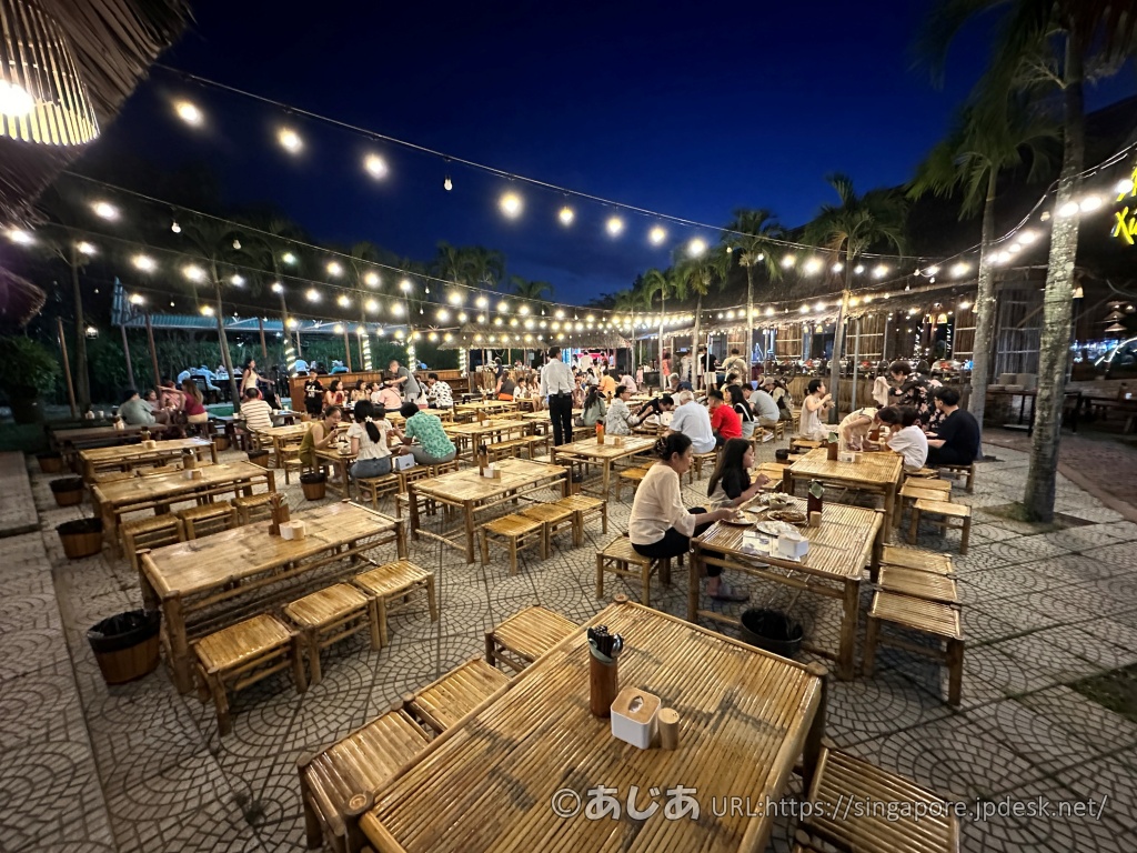 ディナービュッフェを食べる場合は、ホイアンメモリーズショーの開演時刻(20時)の2時間前くらいがいいでしょう。ディナービュッフェを食べない場合でも、1時間~1時間半くらい前に到着しておいた方がいいと思います。