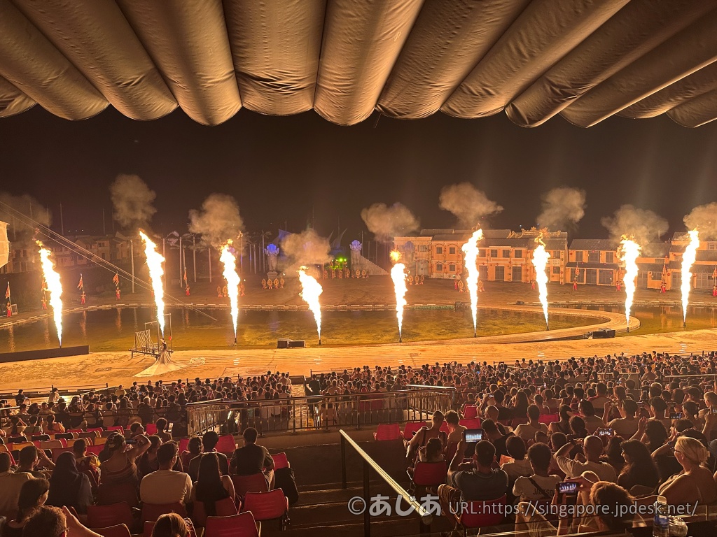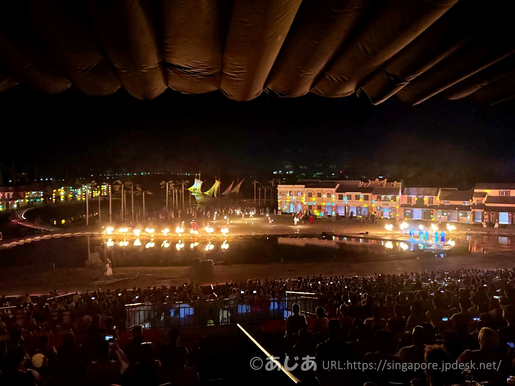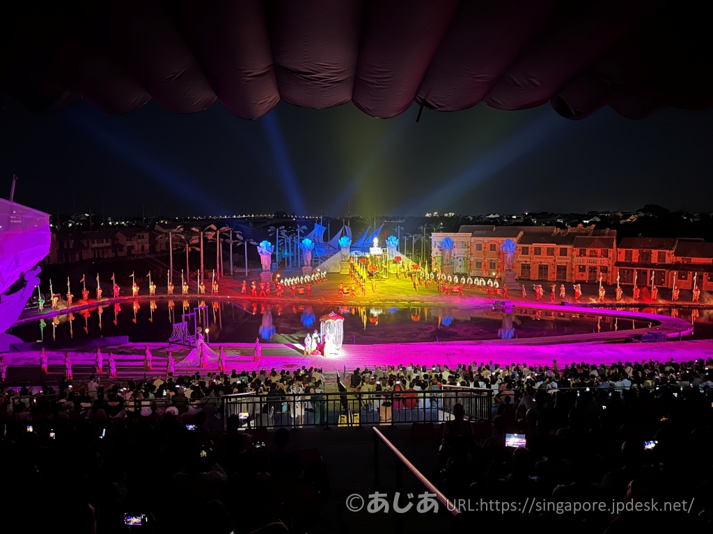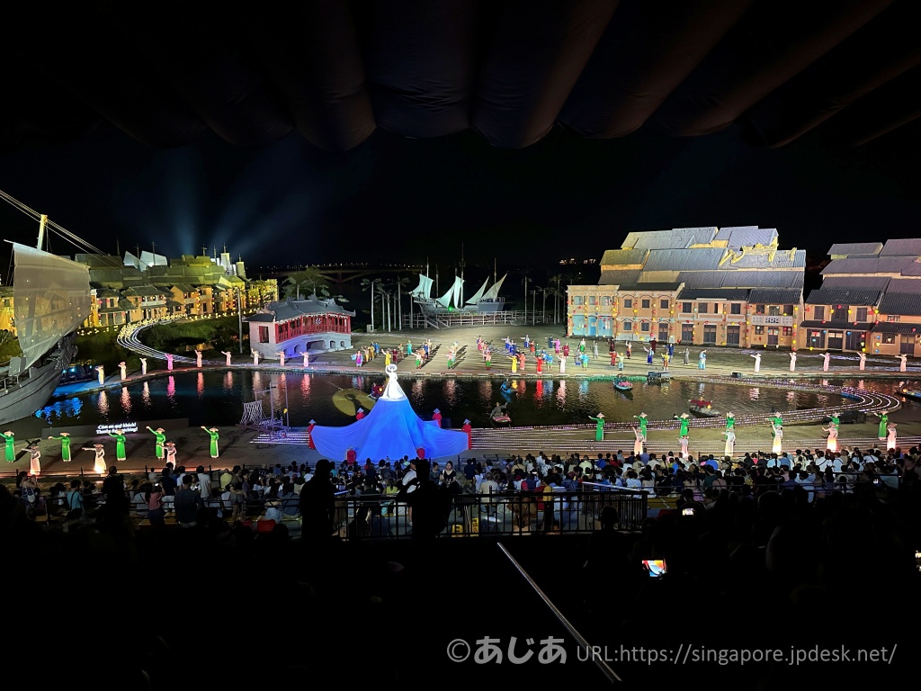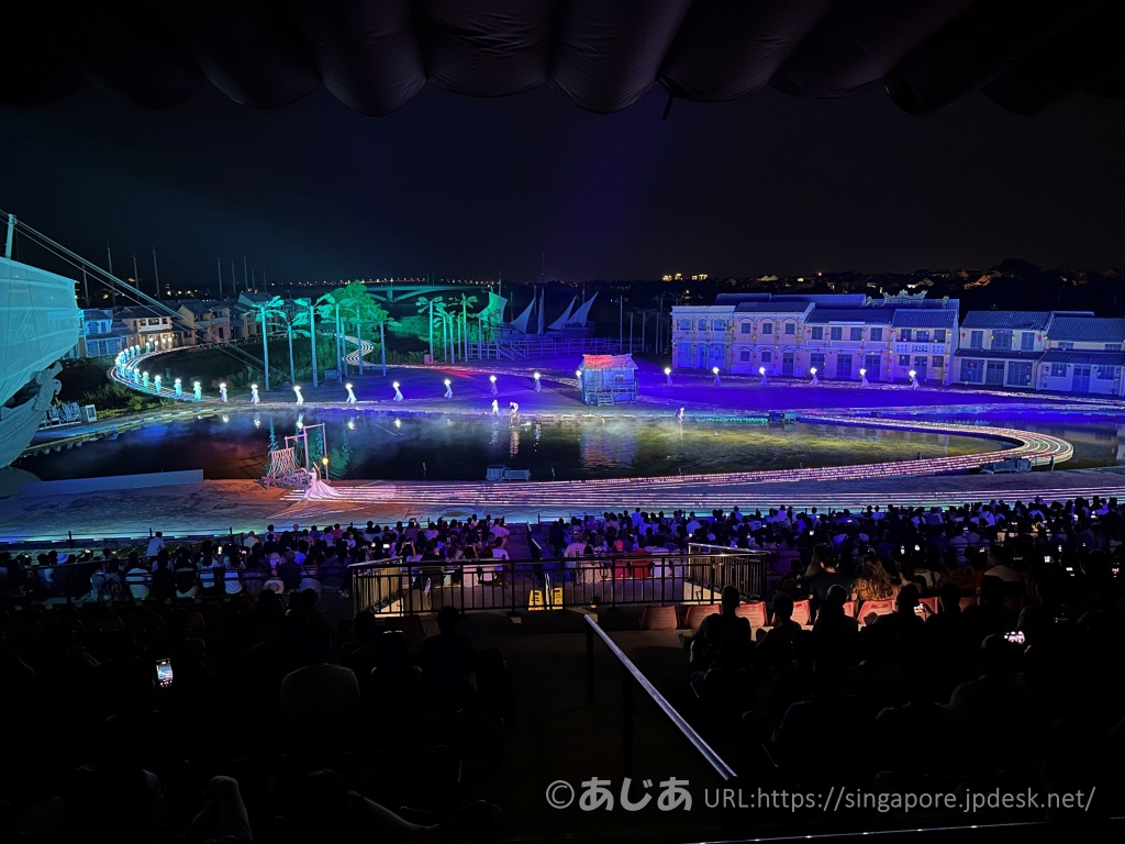 こんな感じでステージはめっちゃ広いので、本当の意味でショーを楽しむには、上段(後方の席)から見るしかないと思います。その意味では上段後方席のVIP席がおすすめです。