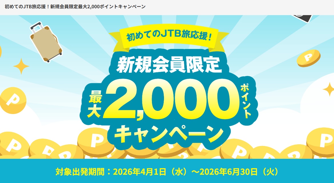 JTB新規利用者向け ポイントバックキャンペーン