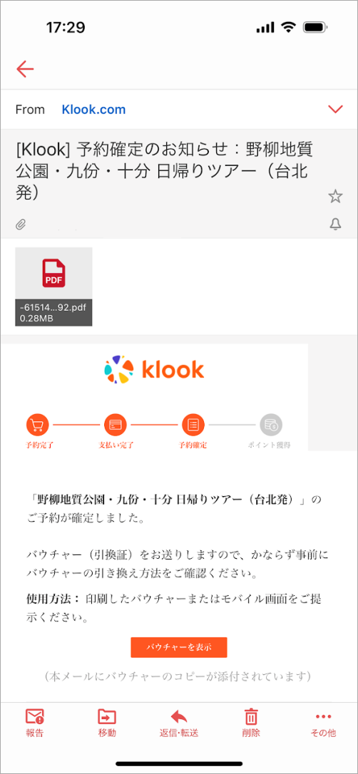 決済後すぐにメールでeチケット(バウチャー)が送られてきます。