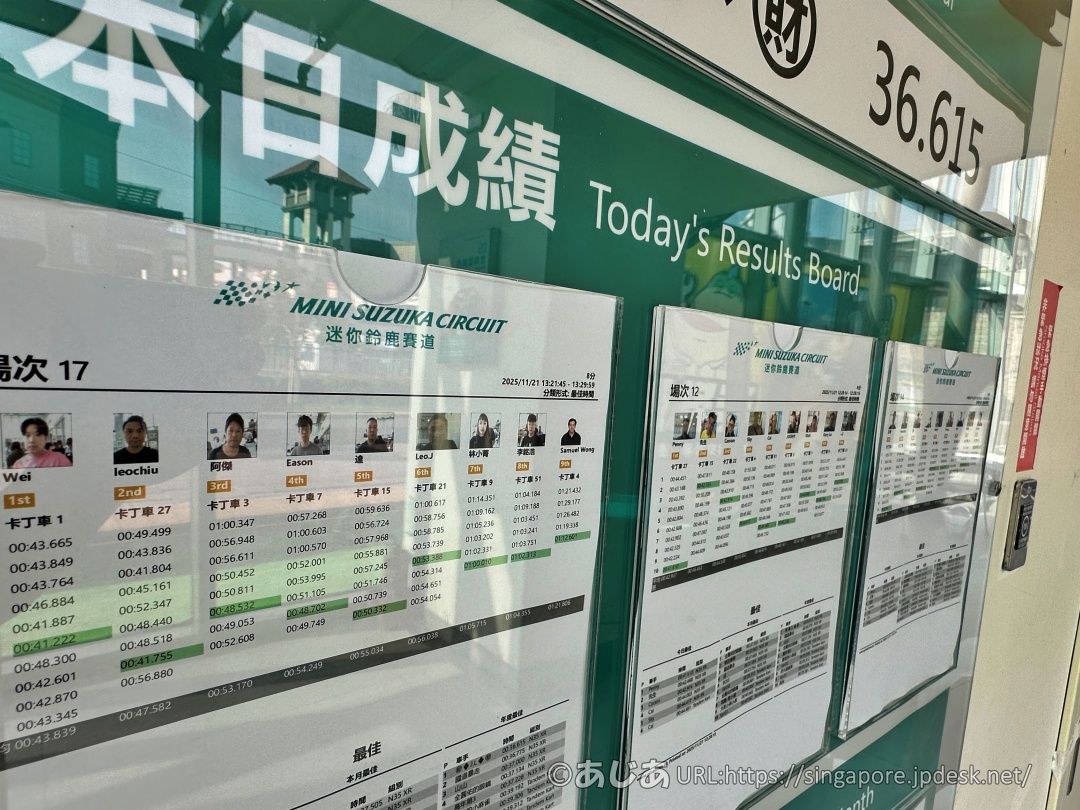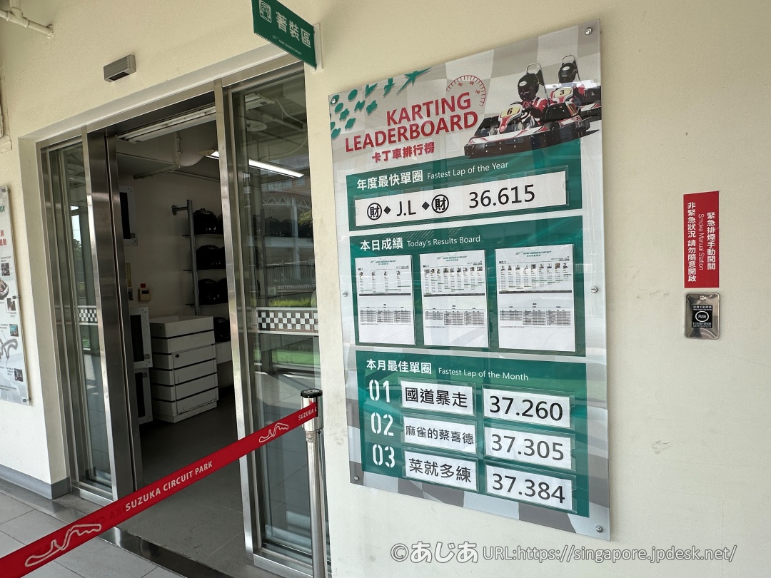 最速ラップタイムはフィッティングルームの前に掲載されています。
