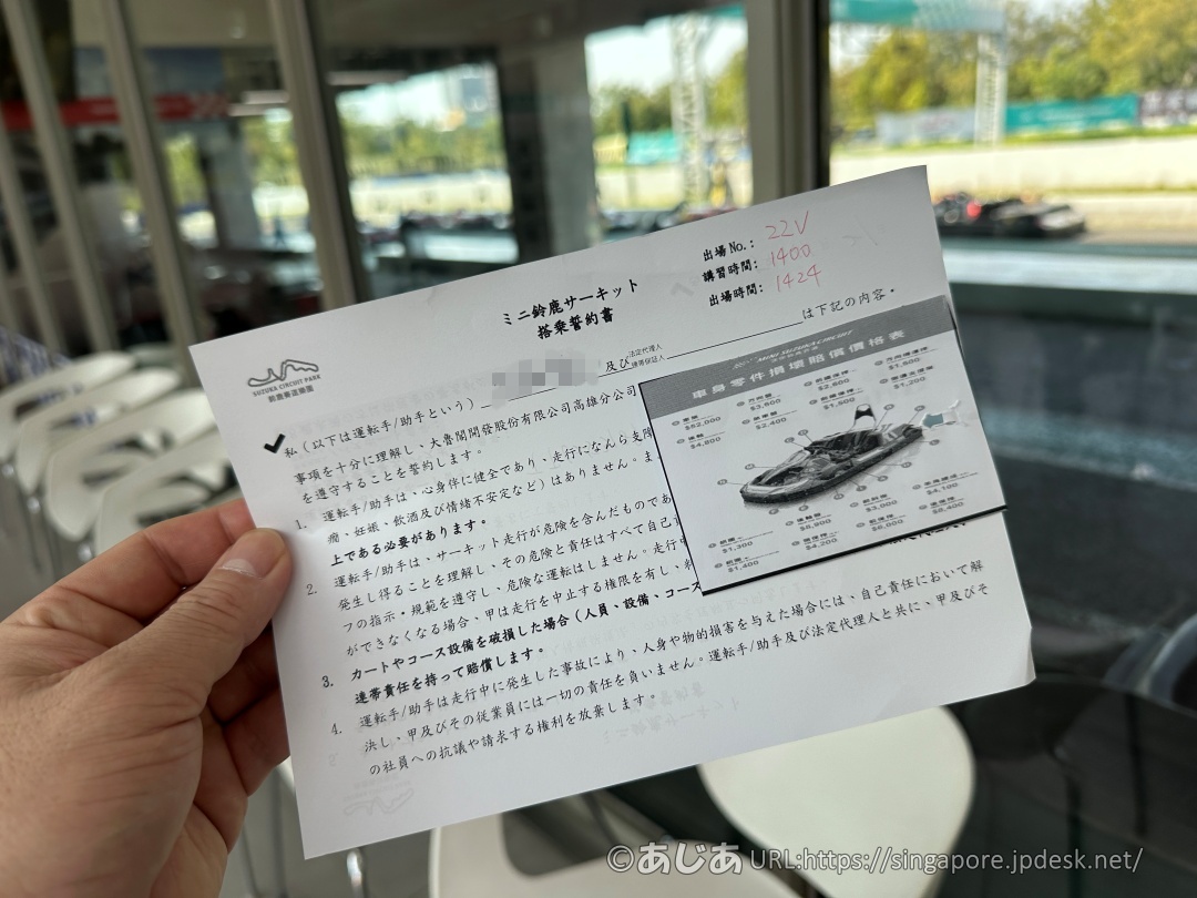 写真とか抵抗ある人もいるかもしれませんが、体験者的には、一時的なものなのであまり気にしなくてもいいと思います。それより、レーサーな何かになり切って楽しんだ方がいいかなと思います。