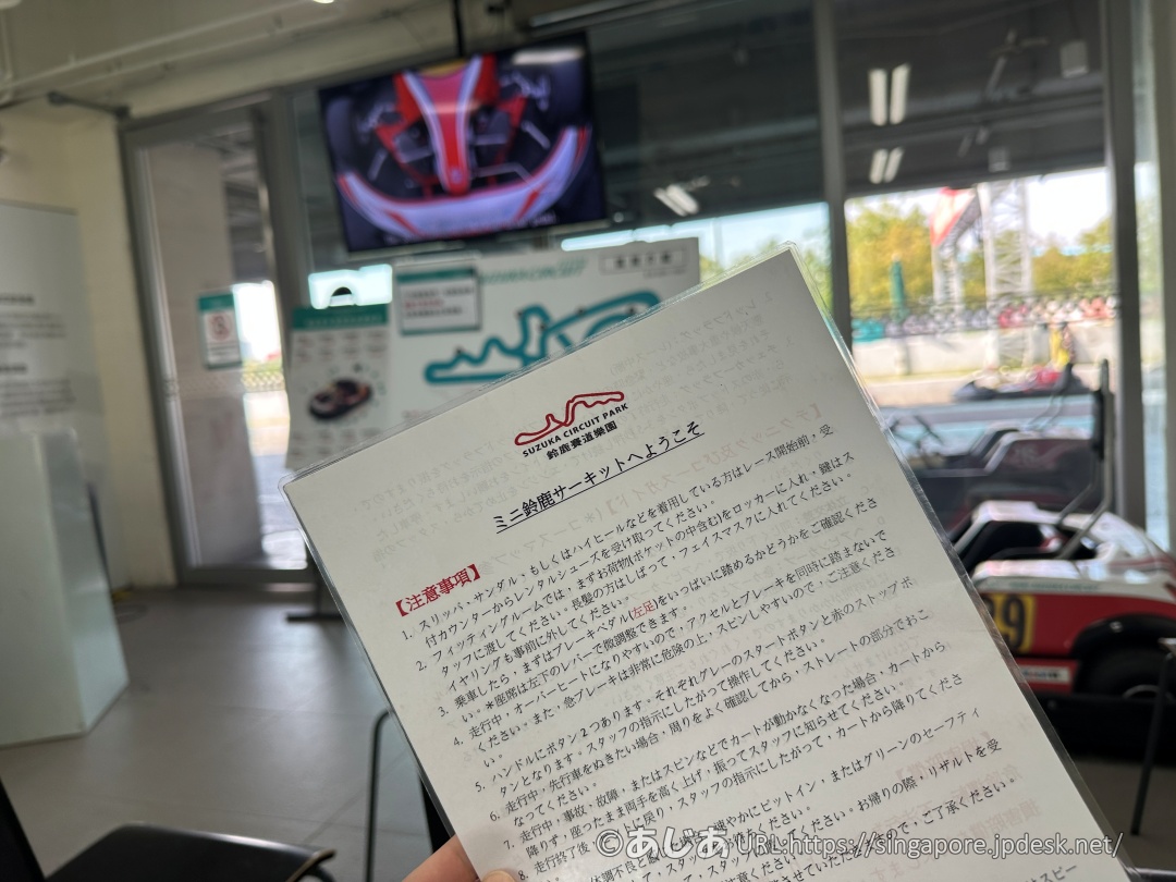 パーク内には観覧車やメリーゴーランドなど子供向けのアトラクションも多いですが、今回のお目当ては一番人気の「ミニ鈴鹿サーキット(Mini Suzuka Circuit)」*でのカート走行体験です。