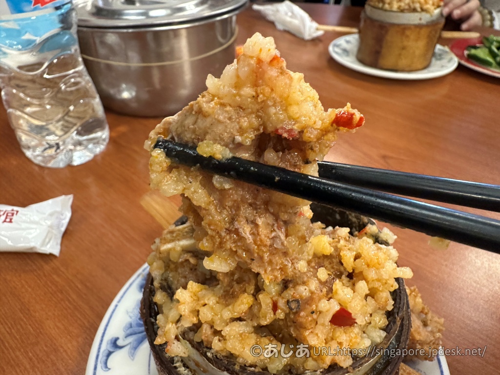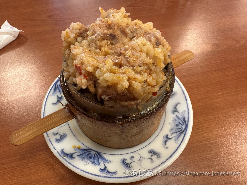 なぞの食べ物ですが、炊き込みご飯の中に隠されたスペアリブ。まあこんなところに入れたら、どう評価していいかわかりませんね。ねちょっとお米がまわりに着いたお肉です(笑)。不味いわけではないですけど…