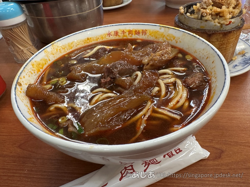 まずは定番の紅焼牛肉麺(Lサイズ:310台湾ドル、Sサイズ:280台湾ドル)です。