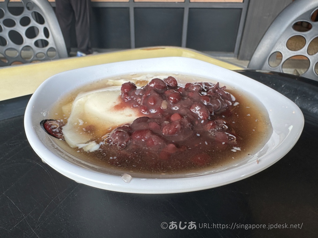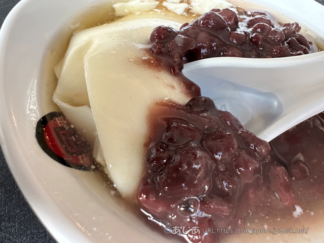 豆花はとてもなめらかで、大豆の風味が感じられる優しい味。そこに甘すぎないあずきが加わり、どこか懐かしさのある組み合わせです。派手さはありませんが、「これぞ台湾の豆花」 という安心感のある一杯。
