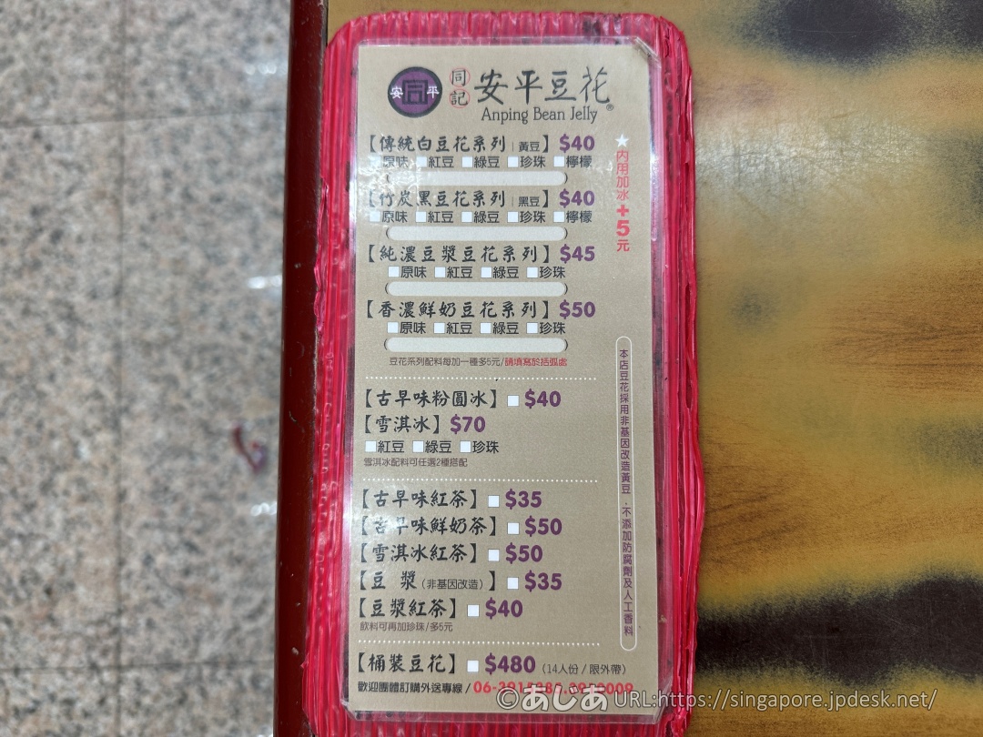 台南の同記安平豆花が盲点なのか、意外と混んでないのもいいところ。台南観光の合間にサクッと立ち寄れる観光効率のいいお店です。