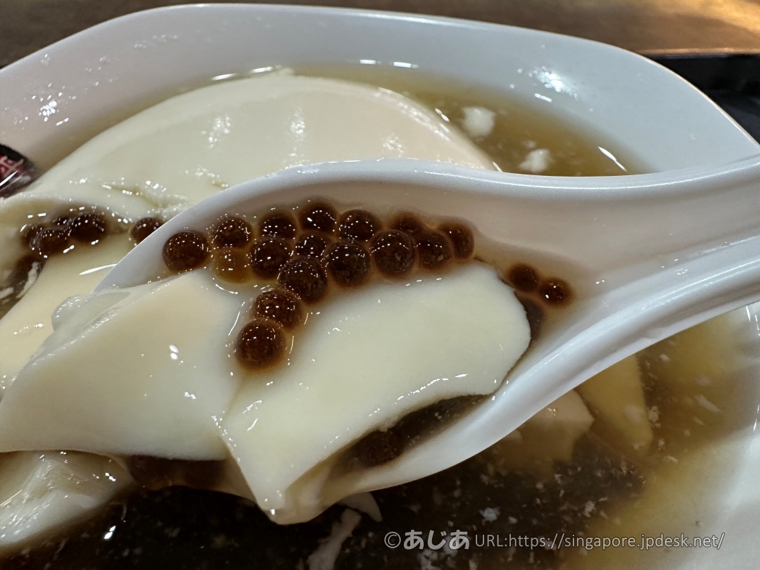 タピオカは超小粒。これが豆花にあっていておいしいという人が多いみたいです。