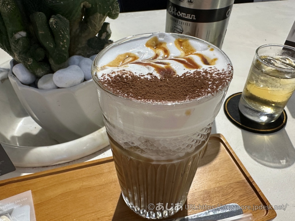 今回は、他のチュングエンレジェンドで、コピルアクとエッグコーヒーを体験済みなので、もう一つのベトナムの人気アレンジコーヒー「ソルテッドコーヒー」をチョイス。これがまたおいしいんです^^