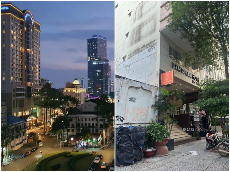ホーチミンの中心部、ドンコイ通りや歌劇場(オペラハウス)周辺で、リーズナブルに泊まれるホテルを探していて発見した「ディン オペラ ホテル(Dyn Opera Hotel)」。観光やビジネスの一等地であるこのエリアは、高級ホテルが立ち並ぶホテル激戦区ですが、一本路地に入ると驚くほど低料金のホテルが見つかったりします。