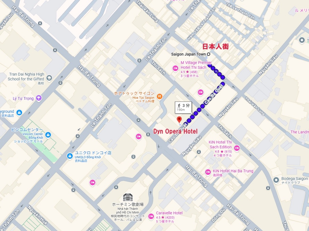 ホーチミンの観光中心地である「サイゴン・オペラハウス(市民劇場)」から徒歩わずか2〜3分。高級ブランドショップが並ぶドンコイ通りや、日本人街と言われるレタントン通りへも歩いてすぐの距離にあります。